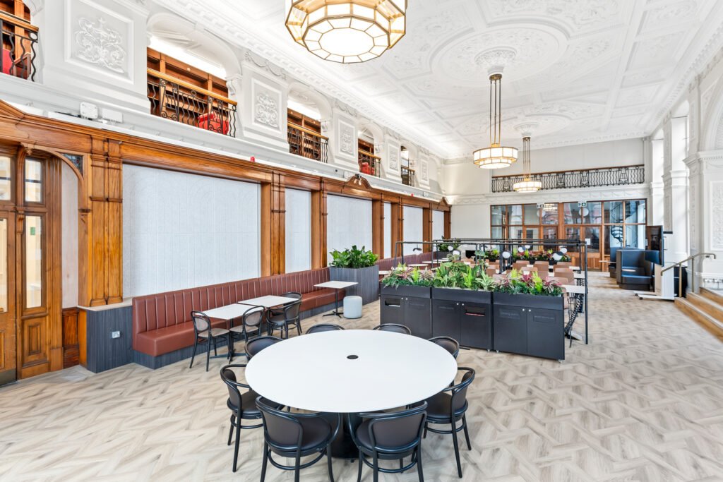 Located on the ground floor podium level, the library underwent a significant upgrade including a new entrance and draft lobby, large reception desks, entrance barriers and offices.
